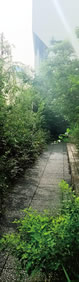 また、この仕組みは雨水の排水システムとしても効果的です。植物へ行き届いたあとの水は、アクアソイルの下に敷かれた管の中を通り、下層に数日かけて落ちていきます。植物への恵みの水から始まり、最終的には1階の植栽や池に達し、強雨時には薬院新川に放水されるという、まさにエコロジーな環境に配慮されたシステムとして機能してきました。