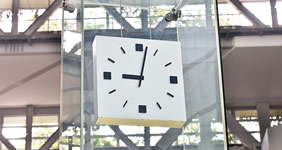 7月号でご紹介したシンフォニーホールのシャンデリアを手がけたロブマイヤー社。実はアクロス福岡1階にあるこの時計も、同じロブマイヤー社のシャロウ・ストーン氏によるデザインです。空中に浮かぶ不思議な時計。ぜひ探してみてくださいね。