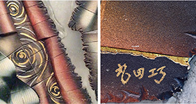 地下2階のイベントホールに入ってすぐ右手に拡がる大きな陶壁画。今年開窯50周年を迎えたうきは市の一の瀬焼・丸田窯の丸田巧さんの「誕生」という作品です。アクロス福岡の開館と同時にお目見えしたこの作品には、縁が繋がるステキなストーリーがありました。