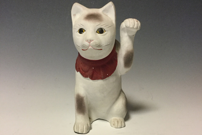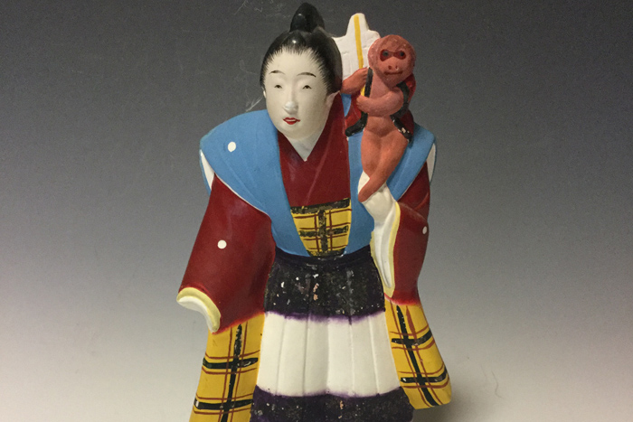 博多人形の母体となった民俗土人形。明治38年に大橋清助(せいすけ)が、今宿に節句人形「人清(にんせい)」を開いたのがはじまりです。伝統的な生活文化や伝承文化、信仰など人々の暮らしに結び付いたものが多く、代表的なものに、火災・盗難よけの「猿面」や「笹野才蔵(ささのさいぞう)」、「おたふく面」などがあります。素朴な中にも温かみのある今宿人形は、多くの人々に愛されました。現在、清助と重雄が大切に使ってきた土型を引き継ぎ、重雄の姪が伝統を守り続けています。