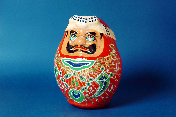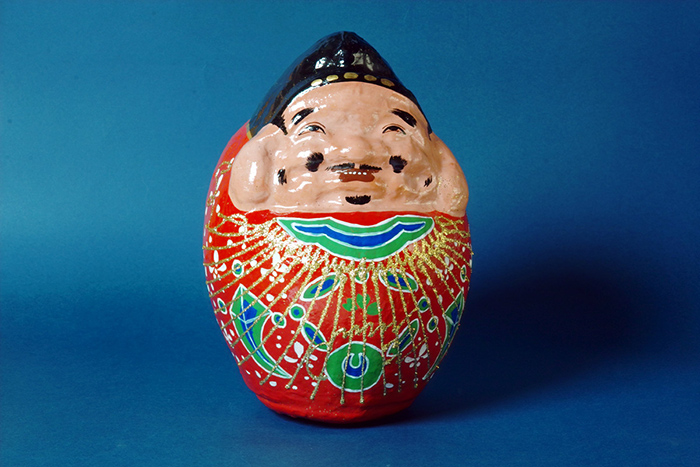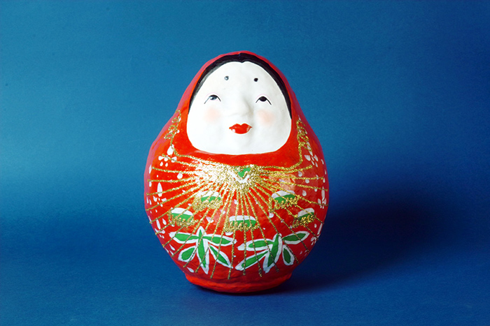 江戸中期、上方の人形師によって伝えられ木製や石膏製の型に和紙などを幾重も重ねて成形される「博多張子」は、布苔(ふのり)によって貼り付け、天日干しで乾燥させたり、その後に二つに割って型から取り出し、貼り合わせながら成型したりと、現在でも昔ながらの手の込んだ製法で作られています。ニカワで溶いた顔料で仕上げた色彩は色鮮やかで、虎やダルマなどを主題にした縁起物として親しまれています。