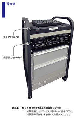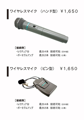 ※注1 マイクロフォンのご利用には、ポータブルアンプまたはレクチュア台が必要です。