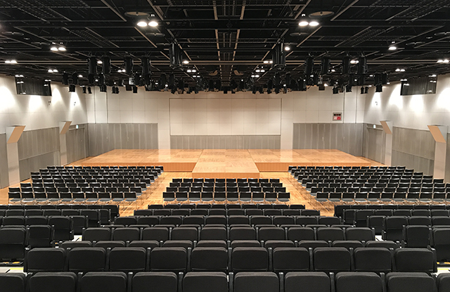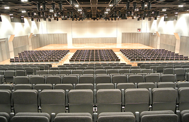 分割昇降式ステージと可動席の組み合わせにより多彩なイベントが可能な多目的ホールです。